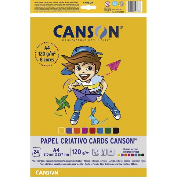O Bloco Criativo Cards A4 120g da Canson é a escolha perfeita para trabalhos manuais, projetos escolares e atividades artísticas. Com 24 folhas em 8 cores vibrantes, este bloco oferece qualidade superior para diversas técnicas, como recorte, colagem, dobradura e montagem. Feito com papel colorido na massa, é ideal para quem busca durabilidade, vivacidade de cores e segurança, já que é atóxico e livre de ácido.