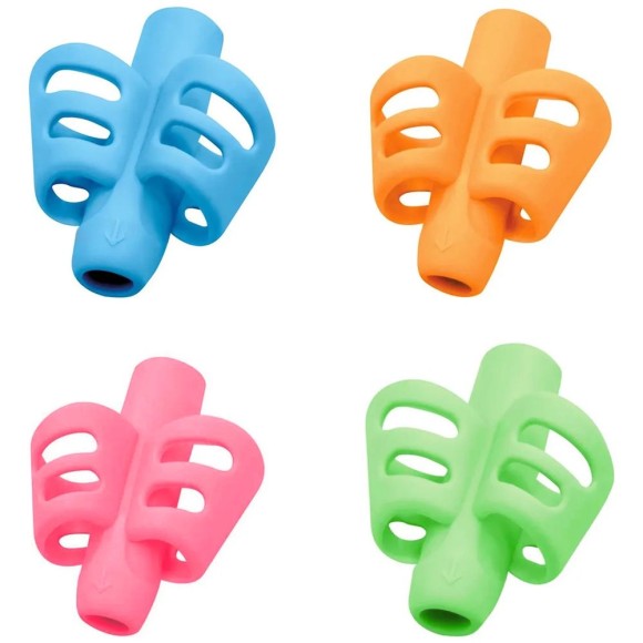 • Auxílio na escrita: Ajuda a segurar o lápis corretamente, promovendo coordenação motora.