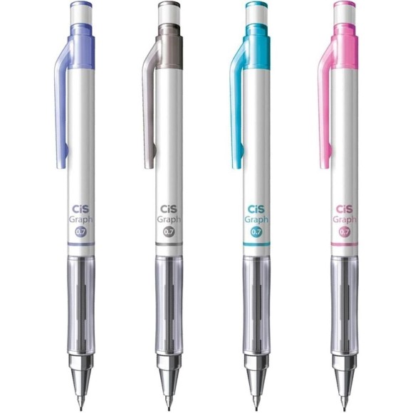 A Lapiseira 0.7mm Graph da CiS combina design moderno, praticidade e precisão para o uso diário. Seu corpo branco com detalhes coloridos disponíveis em azul, preto, rosa e verde traz um visual versátil e estiloso. A ponta retrátil oferece maior proteção, evitando danos e garantindo durabilidade, além de proporcionar mais segurança durante o transporte. Equipada com borracha no topo, permite correções rápidas e práticas sem necessidade de acessórios extras. Com características de uma lapiseira técnica, é ideal para estudantes e profissionais que buscam conforto, qualidade e desempenho em seus trabalhos de escrita ou desenho.