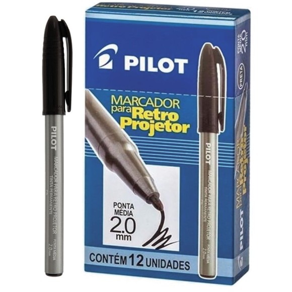 Caneta Retroprojetor 2.0mm - Preta c/12 Pilot