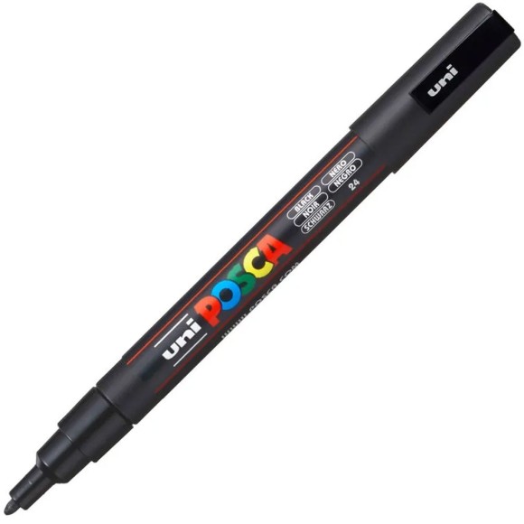 Caneta Posca Preta PC-3M foi desenvolvida para quem busca máxima precisão em traços finos, sendo ideal para desenhos técnicos, ilustrações detalhadas, lettering delicado e pequenas criações artísticas. Sua ponta agulha extrafina de 0.7mm, com reforço metálico, garante firmeza, controle absoluto e acabamento preciso mesmo nos menores detalhes.